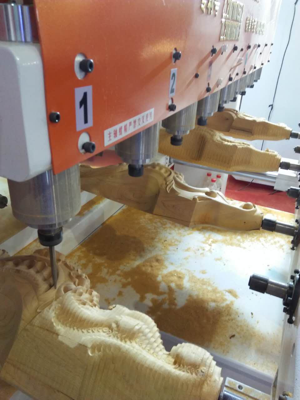 本公司生产的实木家具雕刻机专针对家具厂、工艺品行业开发的一款实木家具雕刻机,可批量生产立体三维工艺、家具立体脚、圆柱体、人体、佛像、观音、雕塑、工艺品、动物生肖等等三维物品,本机配有八个雕刻头,可一次生产八件产品,相当于目前市场上同类产品的几倍效率,人工雕刻的五倍产量,可在三个月收回设备成本。