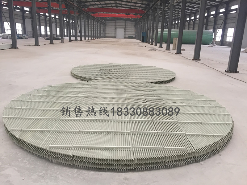 1、玻璃钢除雾器@系统由两层平行除雾器叶片及三层冲洗水管组成。第一层除雾器除去粗颗粒雾滴,第二层除雾器去除细颗粒雾滴。